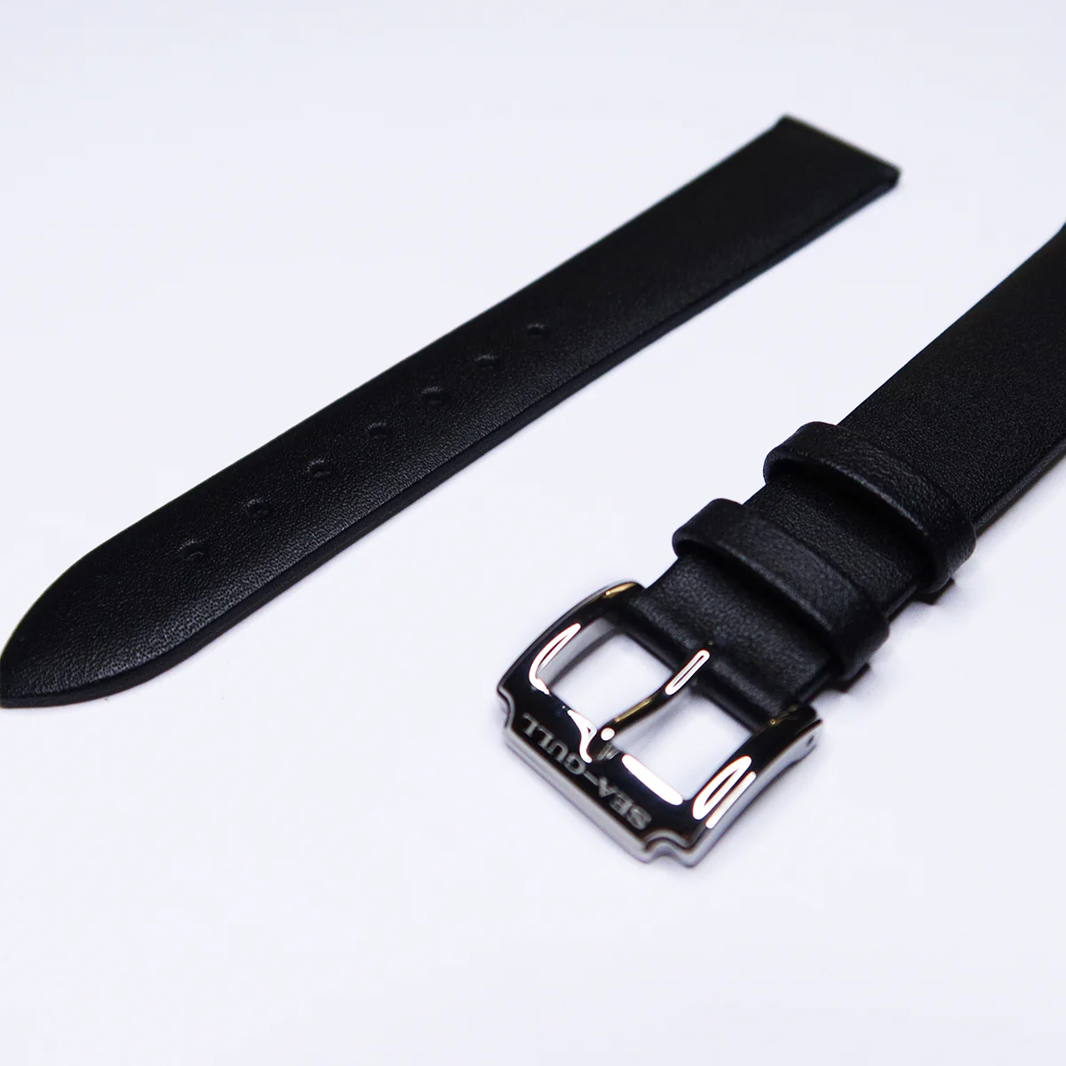 Original No Stitching Smooth Leather Watch Strap Black 18mm